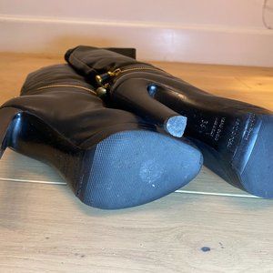 Sergio Rossi Black Leather Knee High Boots with Gold Zipper (Size 36)