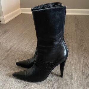 Sergio Rossi Black Leather Pointy Toe High Heel Boots Size 38.5