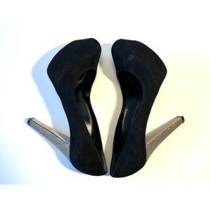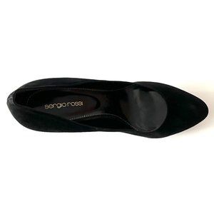 Sergio Rossi Black Suede Pumps w/ Gold Pebbled Heel, Size 11 (US) 41 (EU) New!