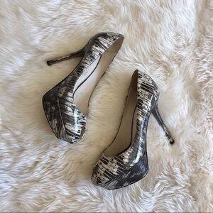 Sergio Rossi Cachet Peeptoe Snake Print Gray Pump