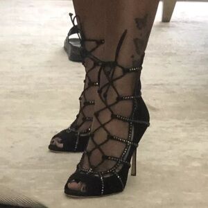 Sergio Rossi Elegant Black Lace-Up Women's heels size 7.5