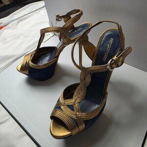 Sergio Rossi Gold & Navy Blue Leather Platform Heels – Size 39 (Made in Italy)