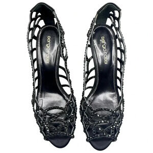 Sergio Rossi Mermaid Cut-Out Crystal Embellished Open Toe Pumps in Black. Size 6
