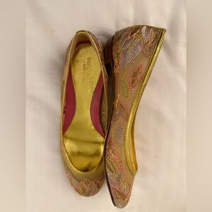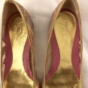 Sergio Rossi Mesh Embroider Leaves Gold Pink Flat Shoe Size EU 36 1/2 US 6.5
