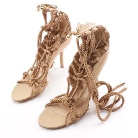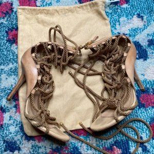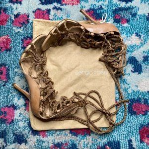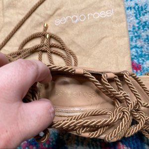 Sergio Rossi Opanca Lace Up Sandals in Beige Size 37.5