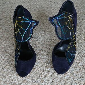 Sergio Rossi Poetic Surrealism night blue butterfly suede heels size 37