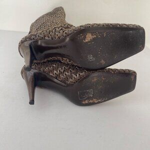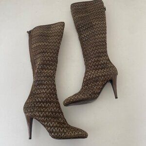 Sergio Rossi Square Toe Tall Woven Boots w Heel Shoes