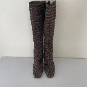 ◼️ Sergio Rossi Square Toe Tall Woven Boots w Heel Shoes, size 40