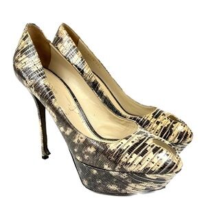 Sergio Rossi Two Tone Water Snake Platform Peep-toe Pumps - Size 40.5 / 10.5