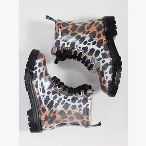 • leopard rubber combat rain boots with black laces