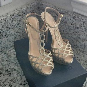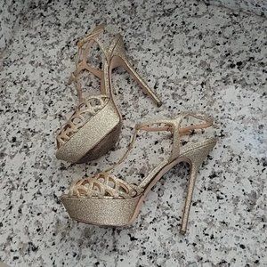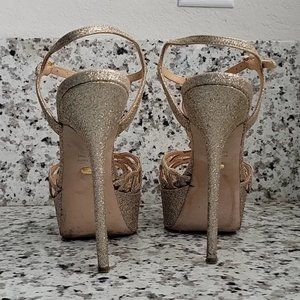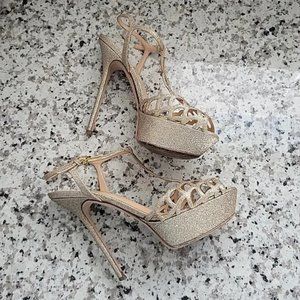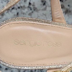 Gorgeous pair of preloved Sergio Rossi heels. They have a shimmering gold upper with glitter like finish.