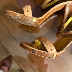Sergio Rossi strappy heels. Tan with gold detail. Used no bag no box. Size 39.5.