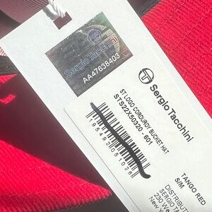 Sergio Tacchini Bucket Hat Tango Red Embroidered ST Logo Corduroy Retro Festival