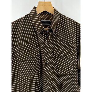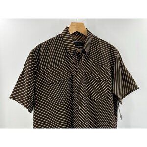 Embrace the spirit of the open range with the Sergio Vadducci 90’s Western Rodeo Short Sleeve Pearl Button Stripe Shirt. A blend of classic style and casual comfort, this shirt is tailored to fit a regular size Large, making it an ideal choice for your wardrobe. The rich brown hue is complemented by the subtle striped design, adding a touch of sophistication to any outfit.