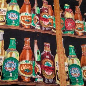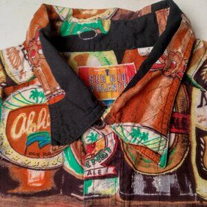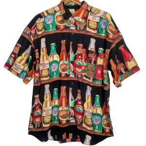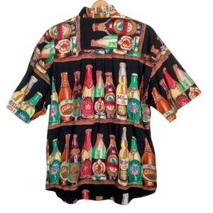 Sergio Valente Beer Shirt Men Large Black Party Brew Bottles Aloha Button Up