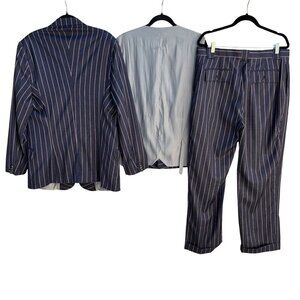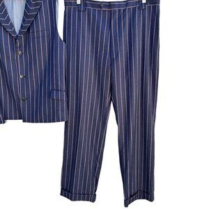 Sergio Valentino Diamond 150s Wool 3-Piece Navy Pinstripe Suit Blazer Vest Pant