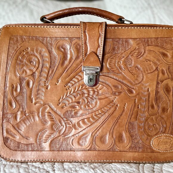 Sergio’s Vintage Hand Tooled Leather Briefcase All leather