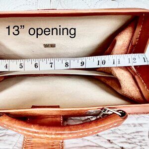 Sergio’s Vintage Hand Tooled Leather Briefcase All leather - Made in Paraguay - excellent condition and rarely used. Great for small laptop or tablet. Detachable and adjustable matching shoulder strap. Super clean on the inside and out - two small stains on the bottom of the accordion folds (see photos) No key for the lock. Measurements in photos. FREE SHIPPING