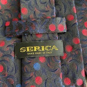 Serica Handmade in Italy Neck Tie 100% Silk Red Blue Dot Emboss Retro Pattern