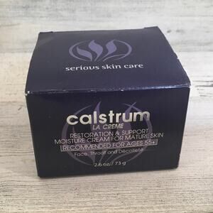 This is a unopened, sealed container of Serious Skin care Calstrum La Creme Restoration & Support Moisture Cream for Mature Skin. Recommended for ages 55+. Face, Throat, and Decollete. 2.6 oz/73 g.