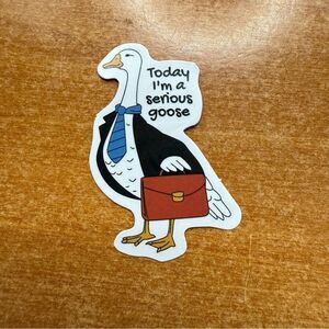 Sticker of a goose in a suit holding a briefcase. Features humorous text.