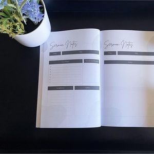 These Sermon Notes Journal are the perfect tool for anyone looking to deepen their spiritual journey and keep track of their personal growth. This journal gives you space to record your thoughts and reflections during the sermon, church services, or Bible studies. It includes dedicated sections for recording the date, title of sermon, key scriptures, key phrases, and questions you might have to have you dig deeper into the topic