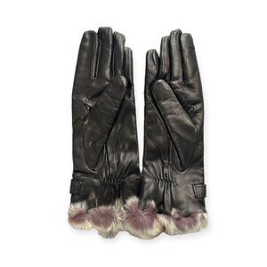 Sermoneta Leather Cashmere Lined gloves with Rabbit fur Trim size 7.5, Black NWT