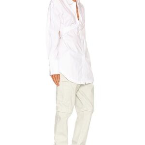 Seroya Mari Backless Tie Knot Front Tuxedo Open Back Button Down Shirt White XS