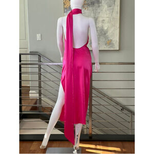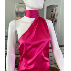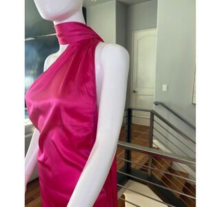 This NWOT Ser.o.ya Marissa Silk Dress in Fuschia features one-shoulder styling with a scarf collar detail. There are a couple of flaws on the neck next to the scarf closure and the care tag is faded (see the last two pics), otherwise, this dress is excellent condition.
