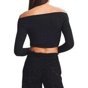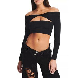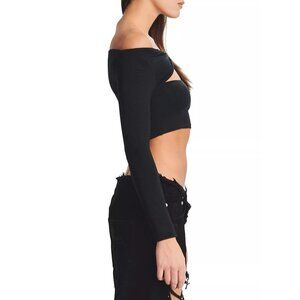 Seroya Size L Ellis Top Long Sleeve Peekaboo Cut Out Crop Top Off the Shoulder