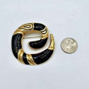 Serpent Snake Brooch Vintage Chunky Paisley Black Enamel Gold Tone Statement Pin