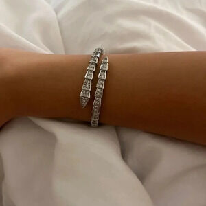 Serpenti Snake Crystal Silver Cuff Bracelet