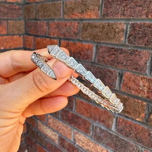 Serpenti Snake Crystal Silver Cuff Bracelet