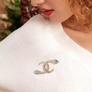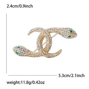 This exquisite gold brooch features a stunning snake design with green accents. Perfect for adding a touch of elegance to any outfit.