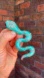 Elegant snake brooch with turquoise body. Accented with blue gemstones. Perfect for adding a unique touch.
