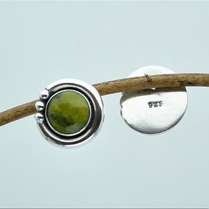 Beautiful lime green serpentine cabochons set in handmade 925 sterling silver studs