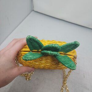 Serpui Sweet Yellow Pineapple Wicker Crossbody Chain Bag