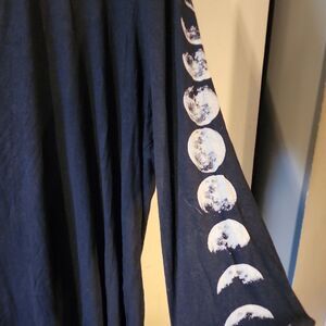 Elevate your wardrobe with the Women's Top. Featuring a unique moon phase design on the sleeves, this top is perfect for adding a touch of celestial style to your outfit. Comfortable and stylish, it's a must-have for any fashion-forward wardrobe.