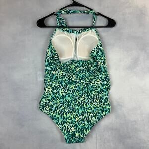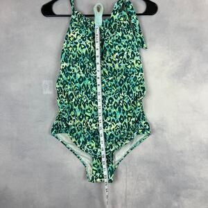 Serra One Piece Green Leopard Print Keyhole Swimsuit Large