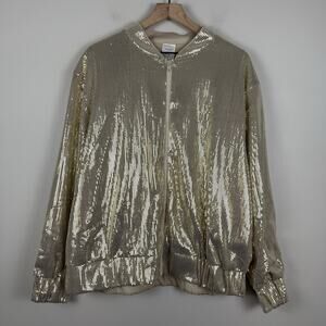 Serra Sequin Bomber Jacket Gold 90s Glam Aldi Tik Tok Viral Ladies Sz L Y2K NWT