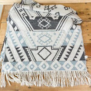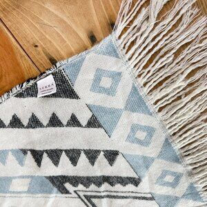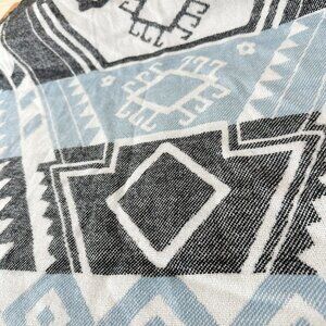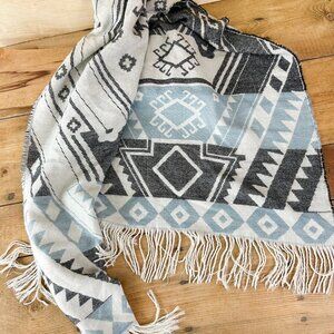 Serra Wide Southwestern Scarf Aztec Blue Black White Knit Fringe