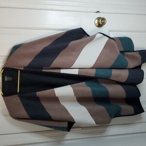 One Size Blanket Open Shawl, toggle close sides. Nice piece on a cool evening. Or carry and use as extra layering or a blanket for your legs. Multi purpose use!