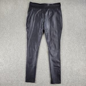 Serra Womens Faux Leather Leggings XL Black Metallic Stretch Skinny Slim Fit New