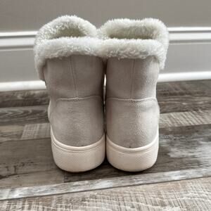 Serra Womens Sneaker Ankle Booties Sz 9 Suede Leather Faux Fur Lining Side Zip