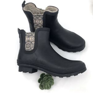 Serra Black Rubber Fur Lined Chelsea Rain Boots- NWOT
