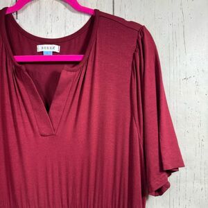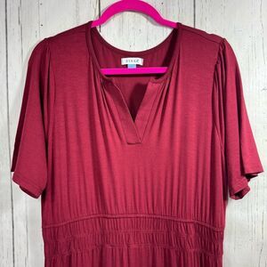 Serra Womens Long MaxI Dress Tiered Burgundy Elastic Waist Boho Stretch Resortwear Dress