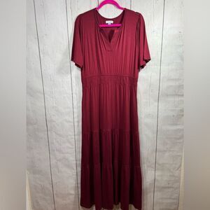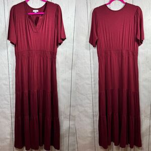 Serra Womens Long MaxI Dress Tiered Burgundy Elastic Waist Boho Stretch Dress