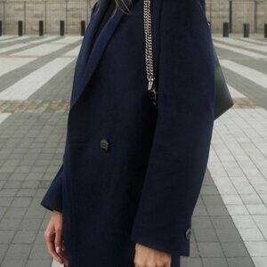 It is lightweight and warm, making it the perfect wool coat for many seasons. The Navy blue tone is very chic, specially when worn with black or neutral colors. Great freedom for styling!