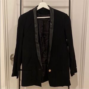 This chic black blazer is perfect for any occasion. Its sleek design adds a touch of sophistication to your wardrobe. Worn once, excellent condition