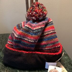 Servv 100% wool handmade in Nepal warm Pom hat..lined with soft wool..in beautiful striped colors..still has tags on..